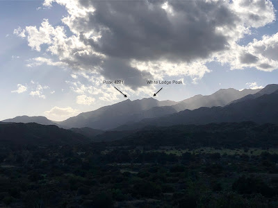 I organized my things, packed up three liters of water, some snacks, and then hit the road. The plan was to reach a sub peak of White Ledge Peak. It's a little rocky promontory with no name and, quite possibly, no ascents. It was an ambitious goal for sure. In order to get to this sub peak I'd have to climb White Ledge Peak first, an already difficult task. Then I'd have to descend a brushy ridge for a ways, encountering unknown obstacles along the way. I had no beta on the ridge other than the last time I saw it from the summit of White Ledge Peak. That was eight months ago. At the time, the thing looked untrammeled, steep, and very brushy. Eight months later, and it was likely even more brushy. But I had to give it a try. I've been lookin' at that sub peak for most of my life. Had to see what was up there, you know?
