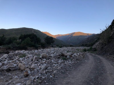 So I drove to the trailhead, noticing a thick layer of clouds covering much of the Santa Ynez Mountains. The morning was chilly and crisp, a thankful relief from the heat that had choked much of the area for the past few days. I started walking a little after 6am, walking up Matilija Canyon towards forest route 5N13. No one was out and about. Nothing but the sound of the creek and the dirt crunching under my feet. The early light of the rising sun shone pink on Old Man Mountain and its twin summit, turning bright and gold as the morning drew long.